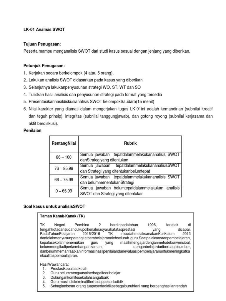 Contoh analisis swot sekolah dasar. Berikut ini contoh analisis swot perusahaan ahm ini hanya contoh saja analisis yang saya tuliskan tidak sepenuhnya benar ada pada perusahaan yang dimaksud. Analis swot sejatinya merupakan analisis yang merujuk pada istilah swot yakni strength kekuatan weakness kelemahan opportunities peluang dan threats ancaman baik dalam faktor internal maupun faktor eksternal. Model analisis swot di atas digunakan untuk menganalisis kekuatan strengths kelemahan weaknesses opportunity kesempatan dan threats ancaman dari sekolah tersebut. Sebagai bahan pertimbangan pemilihan sekolah ini adalah melihat sejauh mana nilai plus yang terdapat di sekolah tersebut dan bagaimana kondisi dan situasi dari sekolah tersebut. Sebagai bahan pertimbangan pemilihan sekolah ini adalah melihat sejauh mana nilai plus yang terdapat di sekolah tersebut dan bagaimana kondisi dan situasi dari sekolah tersebut. Selebihnya hanya perumpamaan saja.