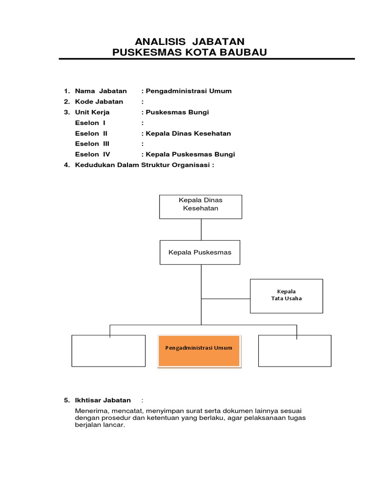 1 informasi jabatan pengadministrasian umum uptd spnf sanggar kegiatan belajar kab. Pemerintah kabupaten barito selatan eselon iiib. Badan pengelolaan keuangan daerah kabupaten bekasi tahun 2017 uraian jabatan. Kedudukan dalam struktur organisasi. 21201 dinas penanaman modal tenaga kerja dan pelayanan satu pintu. Kedudukan dalam struktur organisasi 5.
