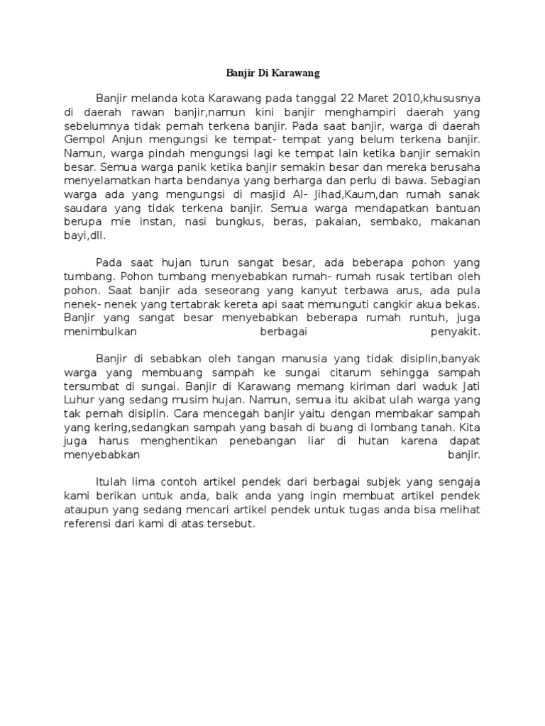 Sebenarnya ada banyak pembahasan yang bisa ditulis dalam suatu artikel. 25 artikel tentang kerusakan lingkungan dan alam paling populer. 4 pola penting bagaimana cara hidup sehat alami menjaga tubuh tetap bugar 7. 10 contoh kalimat repetisi dalam bahasa indonesia 12 contoh majas paradoks dalam kalimat bahasa indonesia. Contoh artikel pendek dan singkat jika sebelumnya kita telah memberikan kumpulan contoh autobiografi maka kita akan coba membagikan contoh artikel pendek yang kami kumpulkan dari berbagai sumber untuk memudahkan anda dalam memilihnya artikel pendek yang akan kami berikan ini terdiri dari berbagai aspek mulai dari artikel kesehatan motivasi pendidikan lingkungan dan teknologi. 2 contoh artikel bahasa inggris tentang lingkungan environment dan artinya pada artikel kali ini admin akan berbagi contoh artikel yang bertemakan lingkungan dalam bahasa inggris.