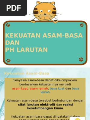 Asam klorida hcl asam nitrat hno3 asam sulfat h2so4 asam bromida hbr asam iodida hi asam klorat hclo3 asam perklorat hclo4 asam lemah. Asam format hcooh asam asetat asam cuka ch3cooh asam fluorida hf asam karbonat h2co3 asam sitrat c6h8o7 asam sianida hcn asam nitrit. Liat tabel kekuatan asam dan basa untuk asam kuat karena ka sangat besar biasanya tidak ditulis atau dianggap tidak mempunyai ka karena praktis semua zat berubah menjadi ion h dan basa konjugasinya. Dalam reaksi konjugasi asam basa di atas dan berlaku untuk semua reaksi konjugasi air merupakan basa lemah dibanding dengan ha asam lebih kuat. Asam kuat adalah asam yang sepenuhnya terdisosiasi dalam larutan berair. Asam adalah senyawa kimia yang bila dilarutkan dalam air akan menghasilkan larutan dengan ph lebih kecil dari 7basa adalah senyawa kimia yang menyerap ion hidronium ketika dilarutkan dalam air.