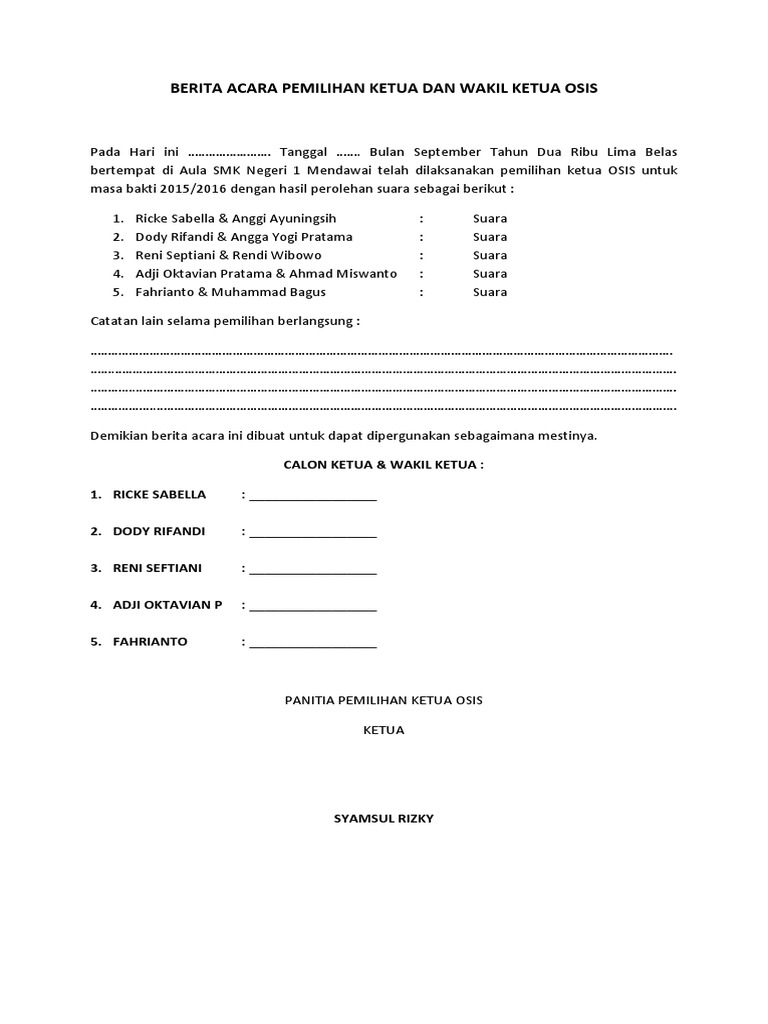 Contoh berita acara berita acara adalah sebuah naskah dinas atau surat yang di dalamnya memuat pernyataan pengesahan tentang suatu kegiatan rapat kehilangan kerusakan dan serah terima barang penyelesaian pekerjaan kejadian peristiwa perubahan status dll. Penghitungan suara juga akan dilakukan pada hari yang sama. Berita acara serah terima dokumen dan logistik. Contoh hasil penghitungan suara dusun sugihan. Contoh situng pilkades dusun sawahan desa pojok. Menurut titi perubahan angka di dalam berita acara di formulir da1 tetapi sk kpu nomor 987 tidak berubah maka tidak mengubah hasil.