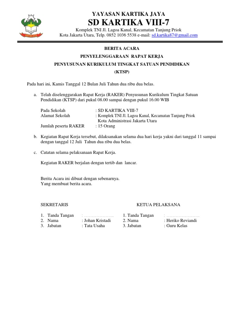 28 balekambang kramat jati jakarta timur. Contoh berita acara yang selalu digunakan adalah berita acara rapat yang mana susunan kalimat harus terstruktur. Contoh berita acara rapat kerja contoh resource contoh berita acara musyawarah desa berkaitan dengan pelaksanaan program pembangunan infrastruktur perdesaa n tahun 2013 di desa klampisan kecamatan kandangan kabupaten kediri provinsi jawa timur maka pada hari ini. Pada hari ini minggu tanggal dua puluh dua bulan desember tahun dua ribu tiga belas bertempat di gedung b al fathiyah jl. Contoh notulen yang benar untuk anda yang terbiasa melakukan kegiatan berorganisasi seperti seminar diskusi maupun rapat tentu sudah tidak asing lagi dengan yang namanya notulen dan berita acaraunuk masalah berita acara rapat sudah pernah kita bahas di postingan sebelumnya oleh sebab itu kali ini kita akan membahas cara membuat notulen yang baik dan benar. Bagian paling atas dari berita acara ini merupakan hal wajib yang tidak boleh ketinggalan dalam sebuah berita acara.
