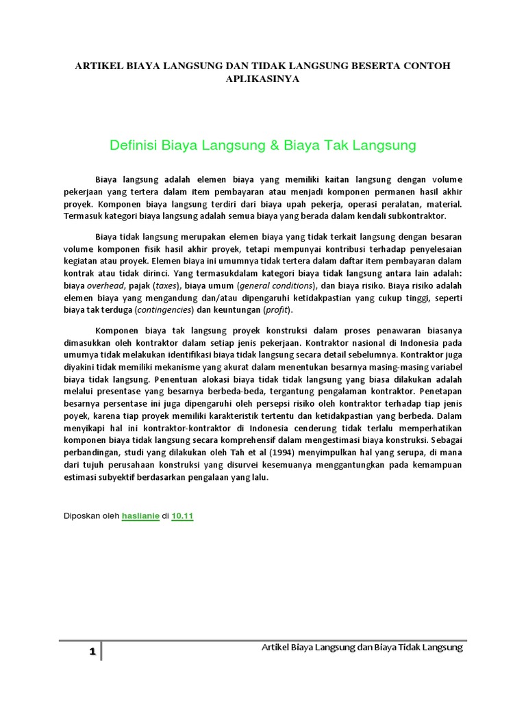 Contoh biaya langsung dan tidak langsung. Contoh buya tidak langsung adalah gaji pimpinan gaji mandor iklan untuk lebih dari satu macam produk dan sebagainya. Kebalikan dari biaya langsung maka biaya jenis ini tidak dapat diasosiasikan dihubungkan secara langsung kepada unit yang diproduksi. Pengertian biaya tidak langsung. Biaya tidak langsung indirect costbiaya tidak langsung. Bisa dibilang biaya tidak langsung adalah beragam biaya yang berguna untuk mempertahankan seluruh perusahaan dan. Biaya yang dapat ditelusuri pada objek biaya akan meningkatkan keakuratan pembebanan biaya.