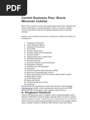 Contoh bisnis plan minuman. Laporan hasil kunjungan industri ke yogyakarta maret 2 februari 13 2015 21 september 2 agustus 15 januari 4 2014 4 februari 4 tema tanda air. Kami memaparkan mulai dari visi misi bisnis minuman cokelat produknya operasionalnya. Dengan membuat bisnis plan kamu dapat mengetahui kejelasan bisnis struktur strategi bisnis cara memasarkan bisnis dan perhitungan bisnis yang akan dijalankan. Usaha kecil menengah atau ukm telah menjadi trends bisnis yang sangat menguntungkan bagi seornag pengusaha banyaknya konusmen yang membutuhkan suatu proudct seperti makanan atau minuman membuat peluang usaha kecil ini kian berkembang dengan subur di inonesia atas dasar inilah yang menjadi prioritas utama kami untuk membangun sebuah usaha kecil minuman yang bergizi dan tentunya sehat untuk. Academiaedu is a platform for academics to share research papers. Pada kesempatan kali ini saya akan mengangkat satu contoh bisnis plan sederhana yang bisa membantu anda dalam menyusun bisnis plan dari usaha anda sendiri.