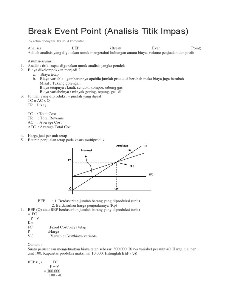 Cara Menghitung Bep Titik Impas Usaha Bisnis Cara Aimyaya