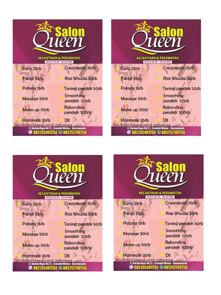 Contoh brosur salon kecantikan. Berikut ini berbagai contoh brosur dari berbagai segmen usaha yang dapat memberikan anda inspirasi bagaimana mempromosikan usaha anda melalui media brosur. Contoh flyer produk kecantikan perempuan mana saja memerlukan kecantikan. Berbeda dengan poster atau brosur sifat flyer umumnya lebih. Salah satu cara agar salon kecantikan selalu laris dikunjungi yaitu dengan melakukan aktivitas promosi. Meningkatnya kesadaran religius di kalangan masyarakat membuka lebar peluang usaha salon muslimah yaitu salon khusus untuk kaum wanita yang ingin melakukan perawatan di tempat yang aman dan nyaman. Baiknya brosur dibuat semenarik mungkin.