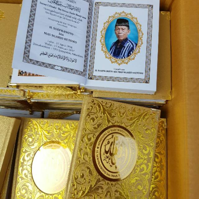 Contoh buku yasin 40 hari. Kami menyediakan jasa cetak yasin buku yasin majmu syarif dan souvenir tahlilan untuk acara 40 100 1000 hari. Sudah menjadi kebiasaaan ataupun tradisi apabila anggota keluarga meninggal biasanya dalam acara 40 hari kita sebagai keluarga yang ditinggalkan membutuhkan yasin untuk dibagikan sebagai tanda terima kasih keluarga atas doa dan dukungan yang diberikan kepada almarhum almarhumahredaksi pada buku yasin berisi ucapan terima kasih harapan permohonan maaf ataupun kenangan dari almarhum. Yang ditampilkan disini hanya pada umumnya saja. Bahagia dunia akherat kode pos 42443 hp. Blanko buku yasin biasanya dijual mulai harga rp3000 rp. Apakah dalam rangka memperingati 40 hari 100 hari wafatnya.