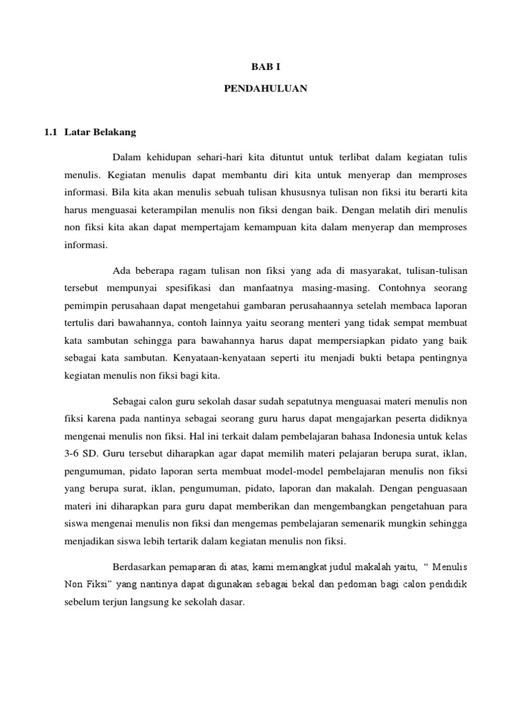 Contoh cerita non fiksi bahasa indonesia. Cerita cerita non fiksi juga ditujukan untuk pembaca anak anak remaja hingga dewasa namun isi bobotnya disesuaikan dengan kebutuhan para pembacanya. Isi cerita fiksi biasanya tetap masuk akal dan berisi kebeneran yang mengandung cerita hubungan antar manusia. Contoh resensi non fiksi dalam bahasa indonesia merupakan ulasan tentang sebuah buku khususnya buku non fiksi yang bertujuan untuk mengetahui keunggulan atau bahkan kekurangan sebuah buku. Dengan demikian definisi cerita fiksi adalah sejenis karya yang buat oleh penulis dalam bentuk fantasi bukan kenyataan. Serta tulisan tulisan sejarah ilmiah teknis termasuk elektronika atau ekonomi. Esai mengenai seni atau sastra.