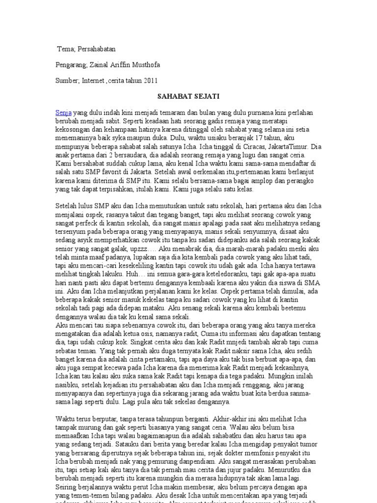 Contoh cerpen tentang sahabat. Kebanyakan orang mengira cerpen itu sama dengan novel padahal dari segi jumlah kata aja sudah berbeda. Untuk mencari cerita pendek cerpen berdasarkan kata kunci tertentu kamu bisa gunakan kotak pencarian di bawah ini. Pada kesempatan kali ini akan diulas mengenai contoh cerpen singkat terbaik yang bisa dijadikan sebagai bahan bacaan anda. Cerpen tentang persahabatan sendiri mempunyai keunikan dan ciri khas tersendiri dari cerpen jenis lain karena didalam cerpen persahabatan terdapat unsur intrinsik yang mempunyai nilai nilai yang mengajarkan kita untuk menghargai arti sebuah persahabatan dan juga pertemanan. Cerpen persahabatan persahabatan adalah sebuah bumbu indah yang terdapat di dalam kehidupan seluruh umat manusia yang ada di muka bumi ini. Persahabatan yang erat dan melekat pada beberapa orang tentunya dapat dibukukan menjadi sebuah contoh cerpen singkat ini.