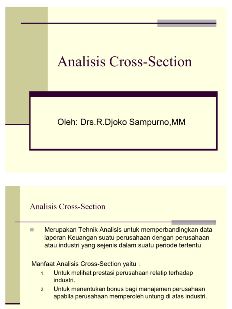 Contoh data cross section. Data cross sectional dianalisis dengan membandingkan perbedaan dalam subjek. Artinya data tidak mengandung unsur waktu namun data dikelompokkan berdasarkan asal responden. Jika dilihat berdasarkan waktu data dapat dibagi menjadi tiga yaitu data cross section penampang melintang time series deret waktu dan pooled panel. Persamaan regresi data panel ada 2 macam yaitu one way model dan two way. Tabel 1 merupakan contoh dari data cross section. Cross sectional data mengacu pada data yang dikumpulkan dengan mengamati banyak hal seperti perorangan perusahaan atau negara wilayah pada titik yang sama waktu atau tanpa memperhatikan perbedaan waktu.