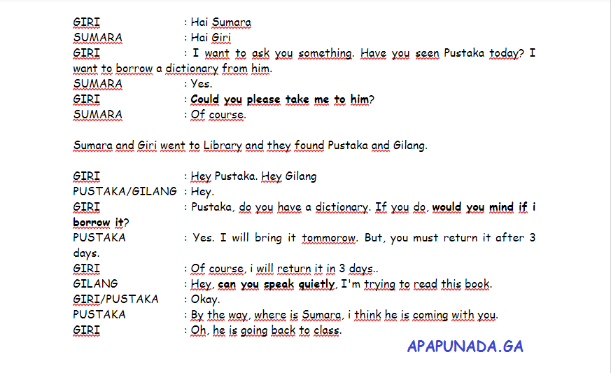 Btw berbicara tentang percakapan bahasa inggris saya jadi inget dulu pernah ngasih kado pernikahan temen seperangkat compact disc berisi kumpulan audio teks dialog bahasa inggris. Contoh dialog bahasa inggris expressing of suggestion. 5 contoh dialog percakapan asking for attention meminta perhatian dalam bahasa inggris terbaru asking for attention adalah salah satu jenis ungkapan yang digunakan untuk menyatakan permintaan seseorang kepada lawan bicaranya untuk memperhatikan dengan apa yang di sampaikan. Kali ini saya memberikan contoh teks perkenalan diri dalam bahasa inggris. Berikut ini contoh contoh dialog bahasa inggris perkenalan. Salah satu bagian penting dalam mempelajari suatu bahasa adalah kemampuan berbicara speaking.