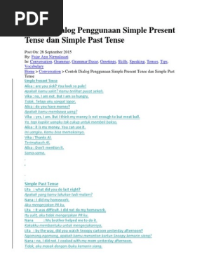 Salah satu syarat untuk bisa membuat contoh kalimat dalam bentuk tenses adalah mengetahui formula atau rumus. Ambil langkah awal kemudian bergerak. Posted in conversation grammar grammar dasar greetings skills speaking tenses tips uncategorized vocabulary tagged contoh dialog 2 orang contoh dialog simple present tense dialog dan arti tentang tenses penggunaan simple present tense dan past tense dalam dialog simple past tense simple present tense post navigation. Apakah sahabat kbi. Demikianlah beberapa contoh kalimat simple past tense dalam bentuk verbal dan nominal dan dalam bentuk positif negatif dan interogatif. Ada dialog tentang liburan sekolah kegiatan hari minggu pengalaman masa lalu dan acara tahun baru.