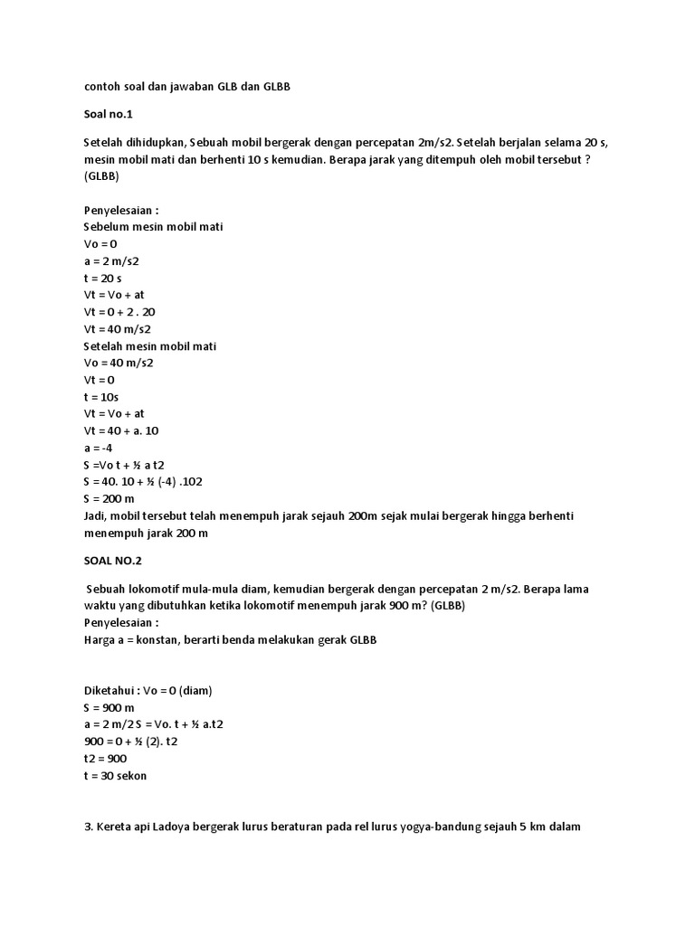 Berikut adalah 10 contoh soal gerak lurus beraturan glb dan gerak lurus berubah beraturan glbb beserta penyelesaiannya untuk materi ipa smp. Seorang bocah kecil yang kurus dan dekil melempar puntung rokok dari atas kereta rangkaia listrik saat berjalan di atap krl tersebut. Pada glbb karena kecepatan bendanya berubah maka ada percepatan di sana. Contoh glb glbb dipercepat glbb diperlambat dalam kehidupan sehari hari. Gerak mobil dengan kecepatan dan percepatan tetap gambar 11 gerak planet mengitari matahari gambar12 pesawat melaju dengan kecepatan tetap di lintasannya gambar13 kereta melaju di rel dengan kecepatan tetap gambar 14. Glb dan glbb gerak lurus beraturan gerak lurus beraturan glb adalah gerak lurus suatu obyek dimana dalam gerak ini kecepatannya tetap atau tanpa percepatan.