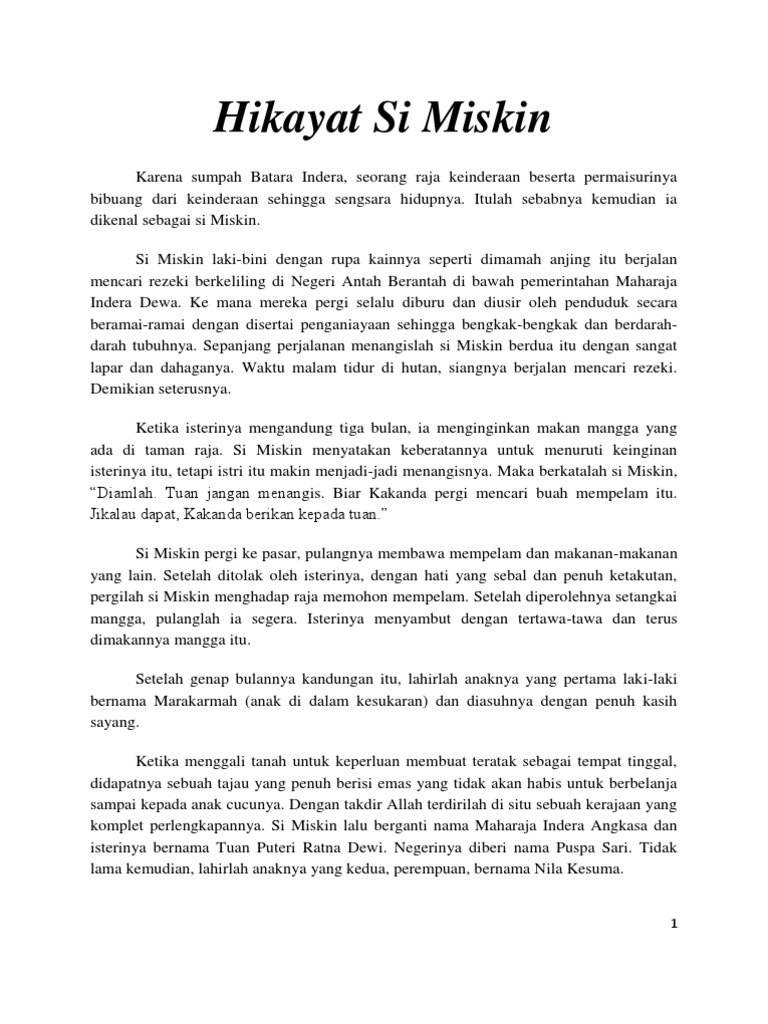 Contoh hikayat si miskin. 10 contoh hikayat karya combirayang. Dari segi asal muasalnya burung ini berasal dari surga. Hikayat seorang kakek dan seekor ular. Contoh hikayat dan strukturnya. Ada seorang suami istri yang dikutuk hidup miskin. Contoh analisis skm hikayat si miskin hikayat si miskin.