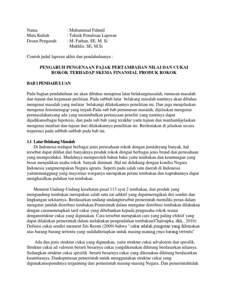 Beragamnya studi kasus yang diangkat menjadikan contoh judul judul ini akan membantu dalam penulisan skripsi anda. 10 contoh judul skripsi tesis tentang meningkatkan jumlah umkm dan tanaman transgenik pada lingkungan hidup. Judul judul tersebut dapat dipesan sesuai dengan tema yang diangkat dalam studi kasus skripsi anda. Judul skripsi akuntansi perpajakan lengkap terbaru persepsi keadilan pajak terhadap perilaku kepatuhan wajib pajak orang pribadi wp op. Silahkan anda simak berikut ini. Contoh proposal skripsi ekonomi ini membahas tentang faktor faktor yang mempengaruhi penerimaan pajak hotel dan restoran di kota yogyakarta selama 15 tahun observasi yaitu dari tahun 1991 sampai dengan 2005.