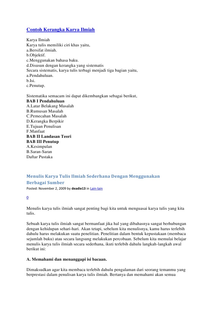 Contoh karya tulis ilmiah sederhana bahasa indonesia beserta pengantar judul 14 februari 2020 30 september 2017 oleh tukang baik contoh karya tulis ilmiah pada kali ini kita melakukan pembahasan mengenai satu dari banyak materi pelajaran bahasa indonesia ialah tentang karya tulis ilmiah adapun kali ini tema karya ilmiah yang akan dijadikan contoh yaitu mengenai penggunaan internet. Karya ilmiah sederhana meliputi karya ilmiah dimana penelitian beserta penulisan yang dilakukan jauh lebih sederhana ketimbang karya ilmiah formal.