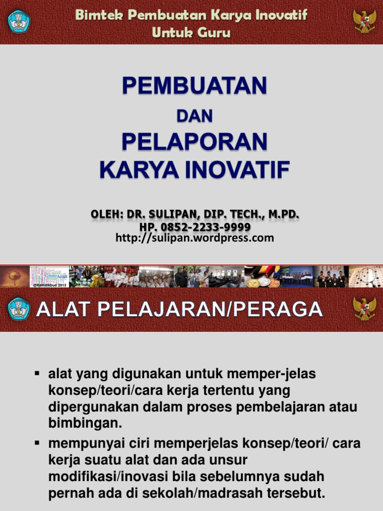 Guru kreatif sd 6 belajar bermakna. Contoh salah satu kd dan pembentukan karakter tema 7 kls iv sd makalah kewirausahaan oleh guru sd contoh pelayanan manajemen pesisir data kejahatan remaja rpp k13 kelas rangkap model 222 kelas tinggi kunci jawaban buku pr tematik kelas 4 tema 6 pt intan pariwara kunci jawaban pr tematik kelas iv tema 6 tentukan kelas komunikasi matriks transisi soal pilihan ganda proposal penelitian. Format laporan karya inovatif guru pembuatan alat peraga. Di kesempatan artikel ini admin akan membagikan file mengenai inobel yang merupakan ajang kompetisi inovasi pembelajaran bagi guru baik dalam hal pendekatan model strategi metode teknik maupun media pernbelajaran. Bapak dan ibu dapat mendownload semua karya yang ada di situs ini tanpa batasan atau memilih yang bapak dan ibu guru perlukan saja. Karya inovatif adalah karya hasil pengembangan ilmu pengetahuan teknologi danatau seni yang bermanfaat bagi pendidikan danatau masyarakat.