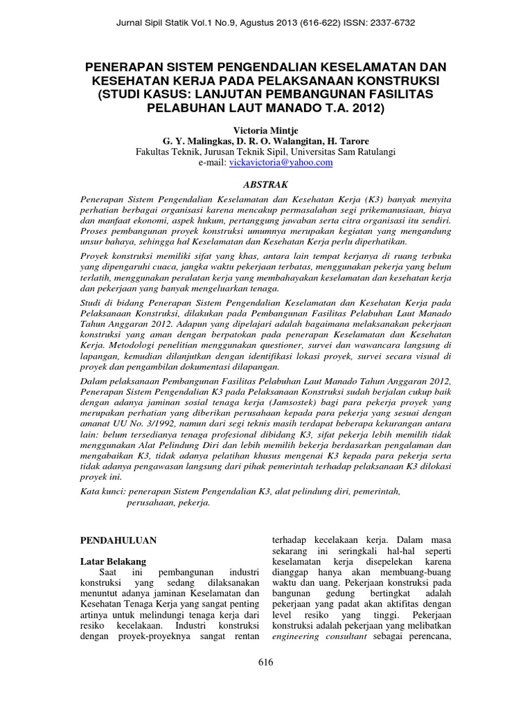 Maraknya kasus kecelakaan yang terjadi pada proyek konstruksi telah mengingatkan bahwa aspek k3 tidak mendapatkan perhatian dari para kontraktor. Jumlah kecelakaan kerja yang tercatat juga ditengarai tidak menggambarkan kenyataan di lapangan yang sesungguhnya yaitu tingkat kecelakaan kerja yang lebih tinggi lagi. Akibat peristiwa tersebut lima orang mengalami luka luka. Setiap hari terjadi 6000 kasus kecelakaan kerja yang mengakibatkan korban fatal. Sementara di indonesia setiap 100. Kecelakaan kerja sebelumnya juga terjadi pada proyek konstruksi di jakarta yaitu box girder lrt light rail transit di kawasan utan kayu jakarta timur roboh pada senin 2212018 dini hari.