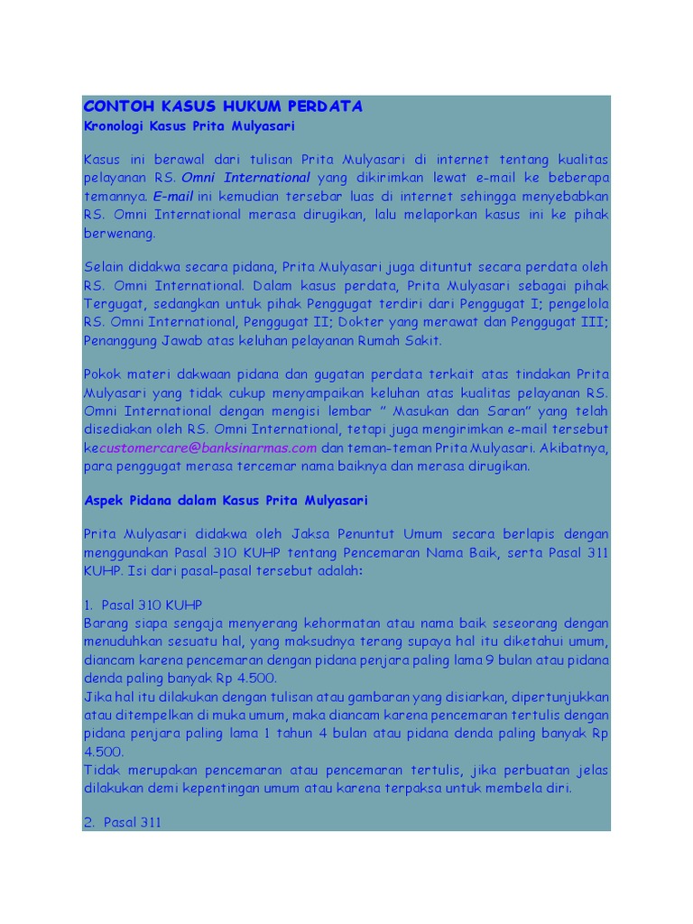 Contoh kasus pencemaran nama baik. Pencemaran nama baik sangat erat kaitannya dangan suatu kata penghinaan dimana penghinaan itu sendiri memiliki pengertian perbuatan menyerang nama baik dan kehormatan seseorang. Dengan kata lain kasus delik pers muncul karena ada pemberitaan yang dinilai menghina atau mencemarkan nama baik. Sebelum arsyad relawan telah menangani kasus pencemaran nama baik sejumlah jurnalis dan narasumber serta masyarakat sipil di daerah ini. Contoh surat ganti rugi tanah dalam pasal 310 kuhp dijelaskan. Barang siapa sengaja menyerang kehormatan atau nama baik seseorang dengan menuduhkan sesuatu hal yang maksudnya terang supaya hal itu diketahui umum diancam karena pencemaran dengan pidana penjara paling lama sembilan bulan atau pidana denda paling banyak empat ribu lima ratus rupiah. Anda bisa melakukannya dengan membuat surat pengaduan.