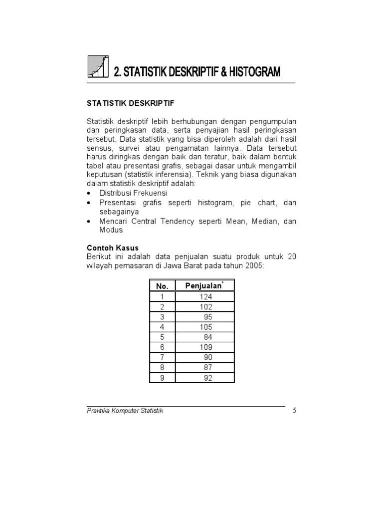 Contoh kasus statistika deskriptif. Pada statistik deskriptif penelitian hanya menggambarkan keadaan data apa adanya melalui parameter parameter seperti mean median modus distribusi frekuensi dan ukuran statistik lainnya. Nilai numerik 72 tersebut adalah bentuk dari sebuah statistika deskriptif. Bentuk metode dan contoh. Dalam catatan kelulusan yang dilaksanakan dalam kurun waktu lima tahun terakhir. Dengan kata lain statistik deskriptif hanya berfungsi menerangkan keadaan gejala atau persoalan. Metode penelitian studi kasus.