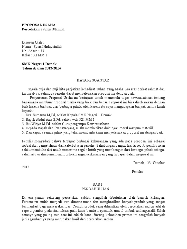 Dalam susunan atau struktur proposal salah satu unsur yang harus ada ialah kata pengantar. Adapun maksud dan tujuan diajukannya proposal penelitian skripsi ini adalah untuk mempelajari bagaimana. Contoh kata pengantar proposal usaha pada kesempatan ini admin contoh kata pengantar akan berbagi informasi mengenai contoh kata pengantar proposal usahakhusus bagi anda yang sedang mencari informasi mengenai contoh kata pengantar proposal usaha. Kumpulan contoh kata pengantar makalah dan proposal lengkap dalam menyusun makalah atau proposal halaman pokok yang utama untuk menjadikan identitas dari sebuah karya tulis adalah dengan adanya kata pengantarkata pengantar merupakan bagian yang bisa dibilang penting karena nantinya pembaca akan mudah mengetahui topik yang dibahas dalam suatu makalah karya ilmiah serta menilai kemampuan. Dengan itu usaha yang akan saya bangun nanti ialah usaha rumah makan khas lampung. Contoh proposal usaha makanan minggu 30 juni 2013.