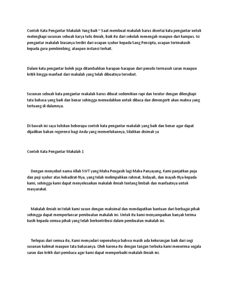 Contoh kata pengantar laporan karya tulis yang baik di dalam sebuah karya tulis ilmiah kliping proposal laporan dan makalah terdapat beberapa uraian pengantar sebagai pembuka yang lazim disebut kata pengantar. Penting kata pengantar itu masih tergolong kepada bagian awal skripsi abstrak lembar pengesahan kata pengantar daftar isi daftar tabel daftar gambar dan daftar lampiran jadi penulisan pada halaman nombernya itu memakai angka romawi kecil seperti i ii iii dan seterusnya. Dengan mengetahui berbagai contoh kata pengantar di atas diharapkan kamu bisa membuat kata pengantar yang baik dan benar untuk karya tulis yang sedang kamu buat. Oke kita lanjut ke inti pembahasan mengenai contoh kata pengantar skripsi dibawah ini ada 10 contoh kata pengantar skripsi yang terbaik. Kali ini didalam tulisan ini telah menghadirkan salah satu artikel informasi yang sangat bermanfaat untuk banyak orang. Memerlukan referensi contoh kata pengantar yang baik dan benar anda tidak perlu kuatir lagi.