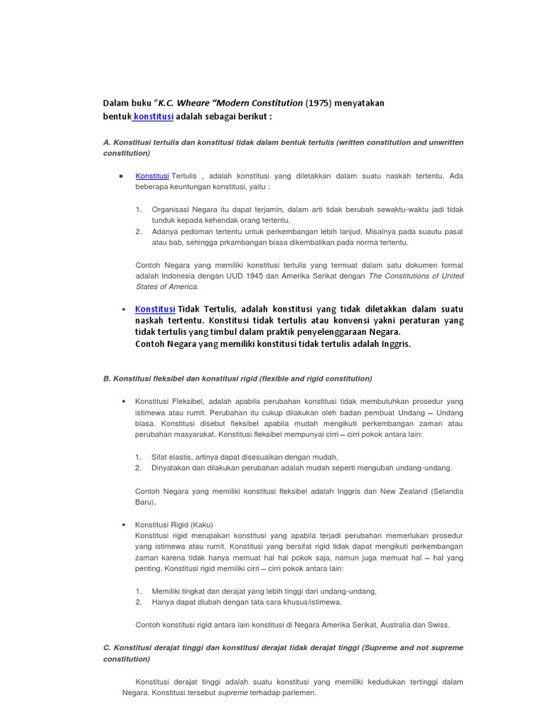 Untuk memperjelas apa saja yang termasuk konstitusi maka artikel kali ini akan membahas secara detil tentang konstitusi. Mulai dari pengertian fungsi konstitusi dan contoh konstitusi tertulis dan tidak tertulis secara detil. Contoh konstitusi tidak tertulis on. Adanya pedoman tertentu untuk perkembangan lebih lanjud. 8 contoh konstitusi tertulis dan tidak tertulis di indonesia. Proses penyusunan dan penetapan dasar negara.