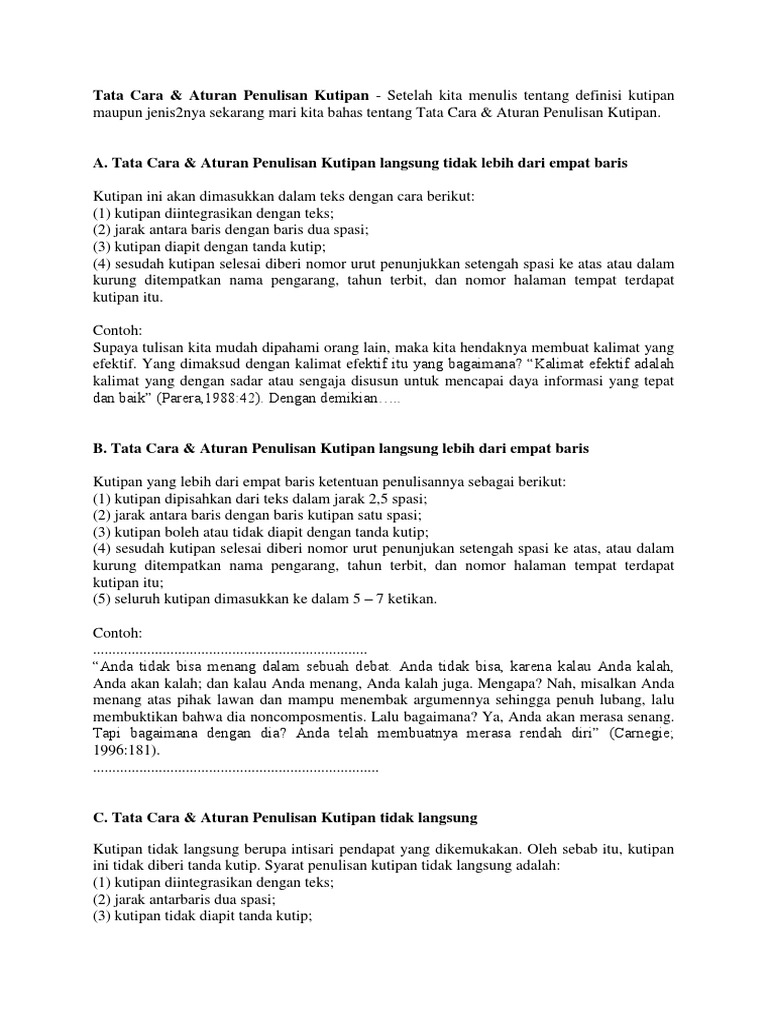 Kutipan ialah pendapat dari seseorang yang dianggap terkenal atau kalimat pinjaman yang diungkapkan oleh seseorang baik dalam majalah ataupun dalam buku. 12 contoh kutipan langsung lebih dari 4 baris terbaru dalam pembelajaran bahasa indonesia terdapat istilah mengenai kutipan langsung maupun tidak langsungapa itu kutipan langsung. 12 contoh kutipan langsung lebih dari 4 baris terbaru dalam pembelajaran bahasa indonesia terdapat istilah mengenai kutipan pribadi maupun tidak langsungapa itu kutipan langsung. Jarak spasi beri jarak spasi selebar 25 spasi antara teks asli dan teks kutipan.