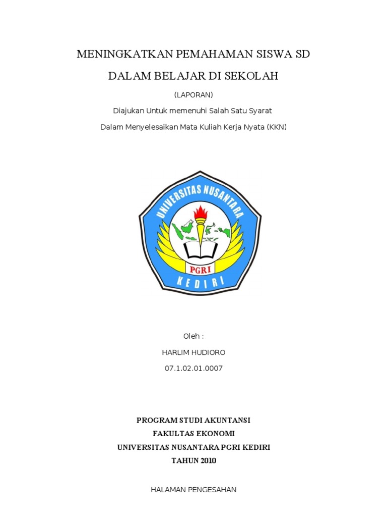 Memperoleh berbagai pengetahuan kasus yang berharga yang berharga yang dapat dipergunakan sebagai contoh dalam memberikan materi perkuliahan yang menemukan berbagai masalah untuk pengembangan penelitian. 11148107 fakultas seni rupa dan desain institut seni indonesia surakarta 2014. Format laporan kkn kelompokindividu. Puji syukur kepada allah swt pencipta alam semesta pemberi kekuatan serta kenikmatan bagi kita semua. Pengesahan laporan kuliah kerja nyata di kelurahandesa hadiwarno kecamatan ngadirojo kabupaten pacitan disusun oleh. Kecamatan seyegan kabupaten sleman.