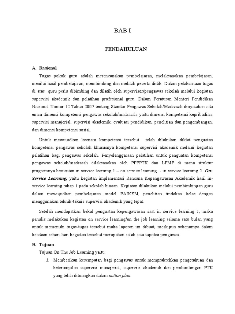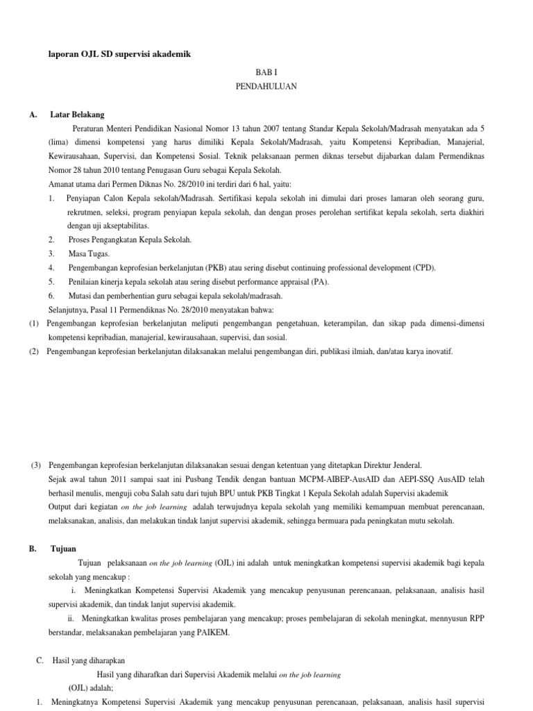 Abdul jamil nim. Kegiatan on the job learning ojl dilaksanakan pada 2 sekolah magang yaitu pada sekolah tempat calon kepala sekolah bertugas dan sekolah lain. Laporan pelaksanaan supervisi akademik di mts nu al hidayah kudus disusun sebagai tugas ujian akhir semester mata kuliah. Berikut ini contoh laporan ojl cakep calon kepala sekolah lengkap meliputi ojl cakep 2016 contoh laporan ojl kompetensi manajerial contoh laporan ojl bab 3 contoh laporan ojl supervisi akademik contoh judul rtk. 040 25 13 121 program studi pendidikan ipa fisika program pascasarjana universitas negeri semarang 2014. Laporan ojl sd supervisi akademik.