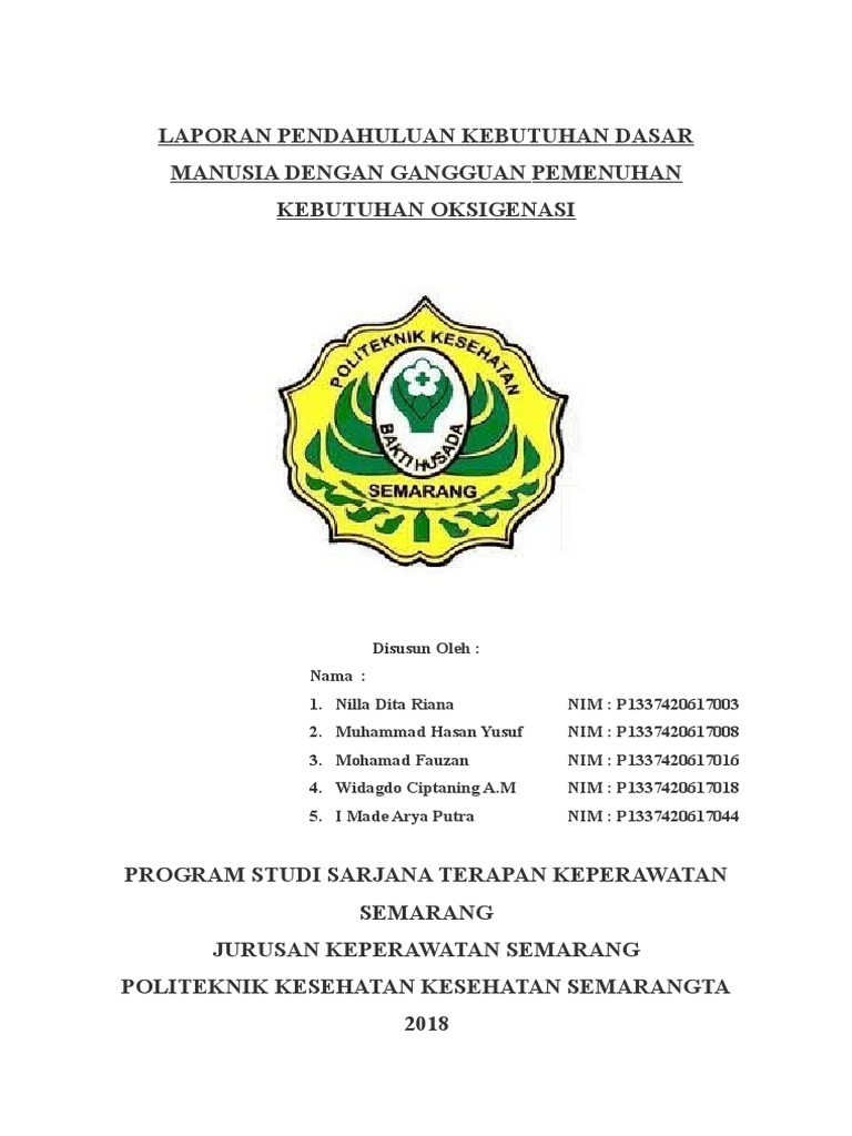 Asuhan keperawatan pada pasien. 1bersihan jalan nafas tidak efektif berhubungan dengan penumpukan secret berlebih ditandai dengan sesak nafas dan rr 35x menit 2. Apabila lebih dari 4 menit orang tidak mendapatkan oksigen maka akan berakibat pada kerusakan otak yang tidak dapat diperbaiki dan biasanya. Laporan pendahuluan gangguan pemenuhan oksigenasi minggu 03 juni 2012. Sebagai hasilnya terbentuklah karbon dioksida energi dan air. Laporan pendahuluan kebutuhan oksigenasi a.