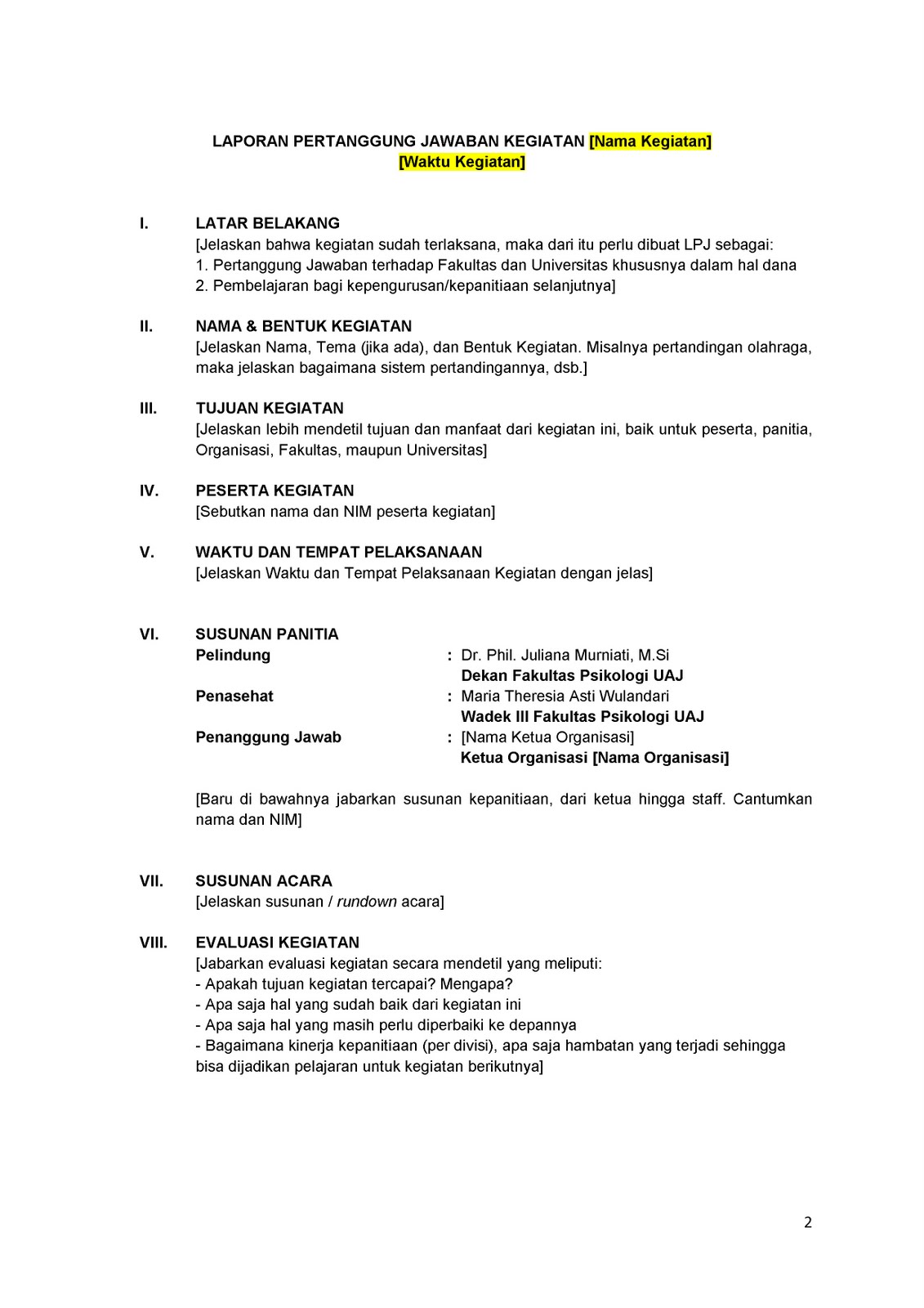 Contoh laporan pertanggungjawaban lpj kepengurusan organisasi. Laporan pertanggungjawaban atau sering di singkat dengan lpj adalah bagian wajib bagi organisasi baik di dalam kampus maupun luar kampus ketika selesai menjalankan program ataupun event. Perjalanan administrasi kesekretariatan yang terdiri dari surat masuk dan surat keluar. Untuk mematuhi peraturan yang ada di kkd dan hampir sepertiga anggota tetap tidak aktif mengikuti rutinitas kegiatan pelatihan organisasi. Laporan pertanggungjawaban lpj di buat sebagai bentuk pertanggung jawaban legal dan tertulis oleh. Contoh laporan pertanggung jawaban kegiatan diposting oleh dauz biotekhno di 1944 jumat 07 desember 2012 laporan pertanggungjawaban.