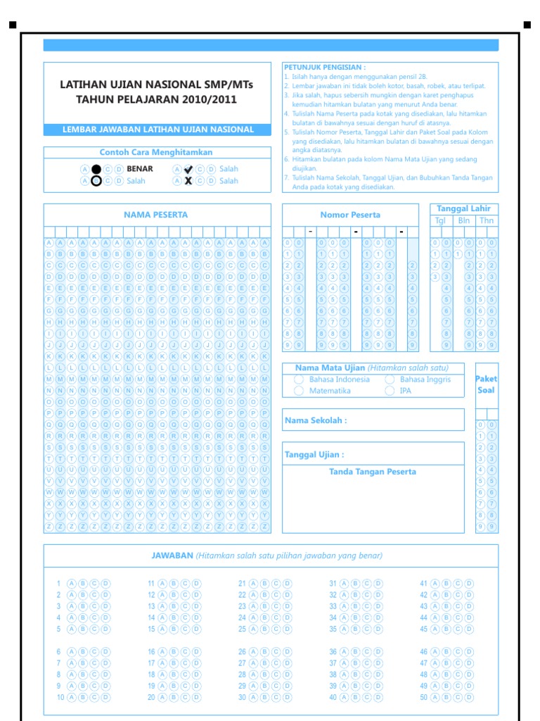 Wa 0816 886 250 lembar jawaban komputer ljk try out un sd smp sma tahun 2019 usbn 2019 sbmptn 2019 pkn stan 2019 harga mulai rp 70 rbrim. Lembar jawaban komputer tryout ujian nasional smpvits. Ljk yang kami bagikan ini dapat disesuaikan dengan situasi kondisi bagaimana dibutuhkannya misalnya untuk keperluan latihan ujian. Contoh ljk lembar jawaban komputer ujian nasional. Inilah lembar jawaban komputer un sd. Contoh file tersebut disajikan sebagai referensi yang mungkin sekiranya bisa sedikit membantu memudahkan pekerjaan bapak ibu semua dalam membuat format ljk tersebut.