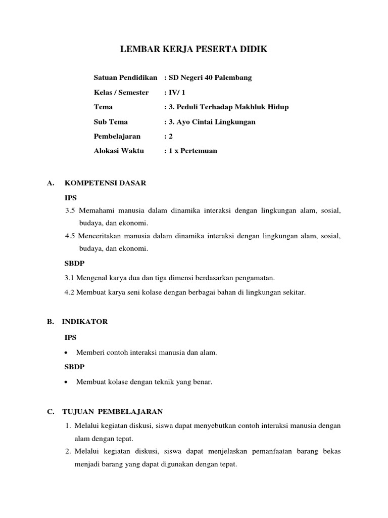 Pengertian lembar kerja siswa lks lembar kerja siswa lks adalah lembaran yang berisi tugas yang harus dikerjakan oleh peserta didik. Lks merupakan salah satu cara untuk mengaktifkan siswa ketika pembelajaran. Lkpd dulunya dikenal dengan sebutan lks lembar kerja siswa namun setelah diberlakukannya undang undang tentang sistem pendidikan nasional istilah siswa diganti menjadi peserta didik maka lks berubah menjadi lkpd. Contoh lks lembar kerja siswa sd kelas 1 semester 1 kurikulum 2013 wednesday september 26 2018 add comment edit contoh lks lembar kerja siswa sd kelas 1 semester 1 kurikulum 2013 jika untuk guru siswa kelas 1 sekolah dasar ingin membuat lks atau lembar kerja siswa kurikulum 2013 silahkan kami beri contoh seperti berikut ini. Namun dalam kenyataanya terkadang guru tidak menerapkan lks ketika pembelajaran dan guru hanya menerapkan strategi ceramah. Lks matematika kelas 7 smpmts kurikulum 2013 lembar kerja siswa lks merupakan media pembelajaran berisi tugas dapat digunakan untuk menguji kemampuan dan pemahaman peserta didik dengan mengerjakan dan menjawab pertanyaan soal.