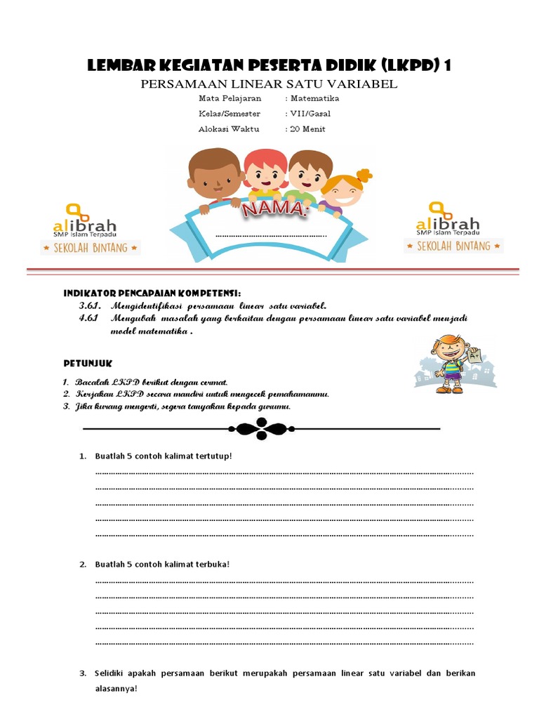 Berdasarkan uraian di atas maka yang dimaksud dengan lembar kerja peserta didik lkpd dalam penelitian ini adalah panduan peserta didik yang digunakan untuk melakukan kegiatan penyelidikan atau penemuan suatu konsep prinsip dan panduan untuk menyelesaikan masalah yang berkaitan dengan materi cahaya yang ada pada buku peserta didik yang diberikan pada setiap pertemuan. Lembar kerja peserta didik lkpd kelas. Berikut ini format dan contoh lkpd kurikulum 2013. Format word akan lebih memudahkan kamu dalam mengubah setiap informasi di dalam curriculum vitae cv tersebut. Terimakasih atas kunjungan sobat dan membaca artikel contoh sampul lks yang baik. Memperhatikan adanya perbedaan individual sehingga lkpd yang baik itu adalah yang dapat digunakan baik oleh peserta didik yang lamban yang sedang maupun yang pandai.