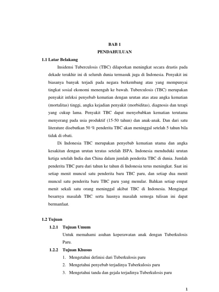 Tuberkulosis tbc atau tb adalah suatu penyakit infeksi yang disebabkan oleh bakteri mikobakterium tuberkulosabakteri ini merupakan bakteri basil yang sangat kuatsehingga memerlukan waktu lama untuk mengobatinya. 0852 0015 4999 0857 0878 5999. Penyakit tb paru masih menjadi masalah kesehatan masyarakat. Asuhan keperawatan pada klien dengan tuberculosis. Insidensi tbc dilaporkan meningkat secara drastis pada dekade terakhir ini di seluruh dunia. Academiaedu is a platform for academics to share research papers.