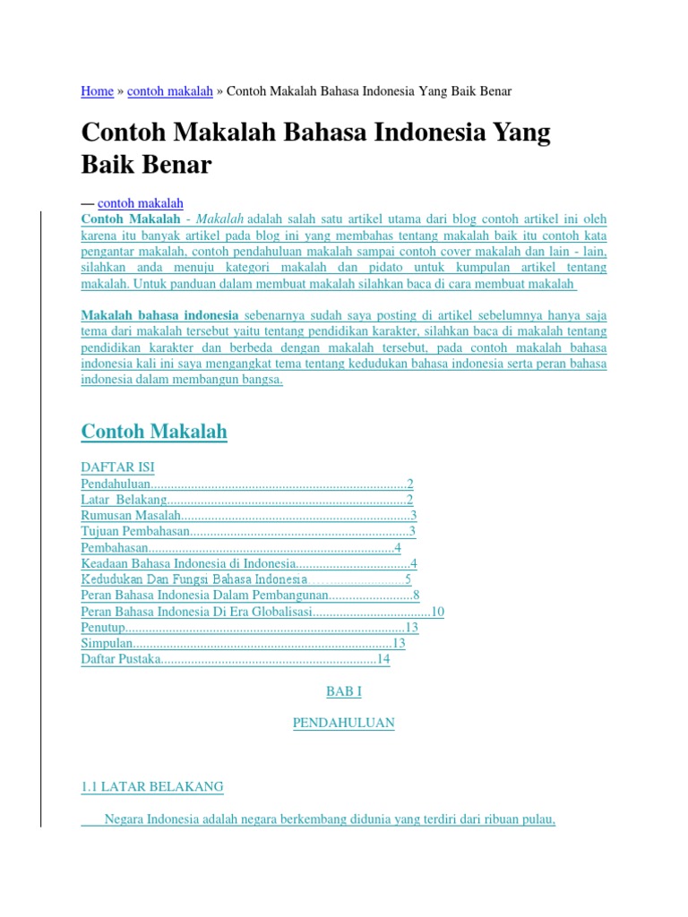 Contoh makalah bahasa indonesia tentang pendidikan. Blog yang membahas tentang kumpulan makalah makalah pendidikan dan lain lain. Makalah sebenarnya bentuk kecil dari karya tulis ilmiah namun dalam segi penulisan makalah harus sesuai kaidah kaidah yang berlaku. Salah satu contoh mereka belum dapat mebedakan bagaimana pelafalan dan intonasi ketika membacakan kalimat langsung dan tidak langsung. Makalah tentang pendidikan itu sendiri merupakan makalah yang mana pokok pembahasannya tidak jauh dari masalah pendidikan yang ada di indonesia. Ragam bahasa baku dan tidak baku ragam bahasa baku adalah ragam bahasa yang sesuai dengan aturan atau kaidah bahasa indonesia dalam hal. Dari contoh makalah tentang pendidikan karakter dan contoh makalah bahasa indonesia di atas maka anda juga bisa menjadikan sebagai bahan pembelajaran.