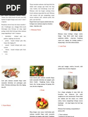 Manusia membutuhkan beragam nutrisi untuk menjalani hidup yang sehat dan aktif. Mengkonsumsi menu makan pagi siang malam 4 sehat 5 sempurna sangat penting bagi kesehatan tubuh. Masing masing zat gizi ini terkandung dalam berbagai jenis makanan yang berbeda. Makanan pokok sehat apa saja kategori makanan pokok yang menjadi bagian dari 4 sehat 5 sempurna. Karena itu menu makanan harus bernekaragam.