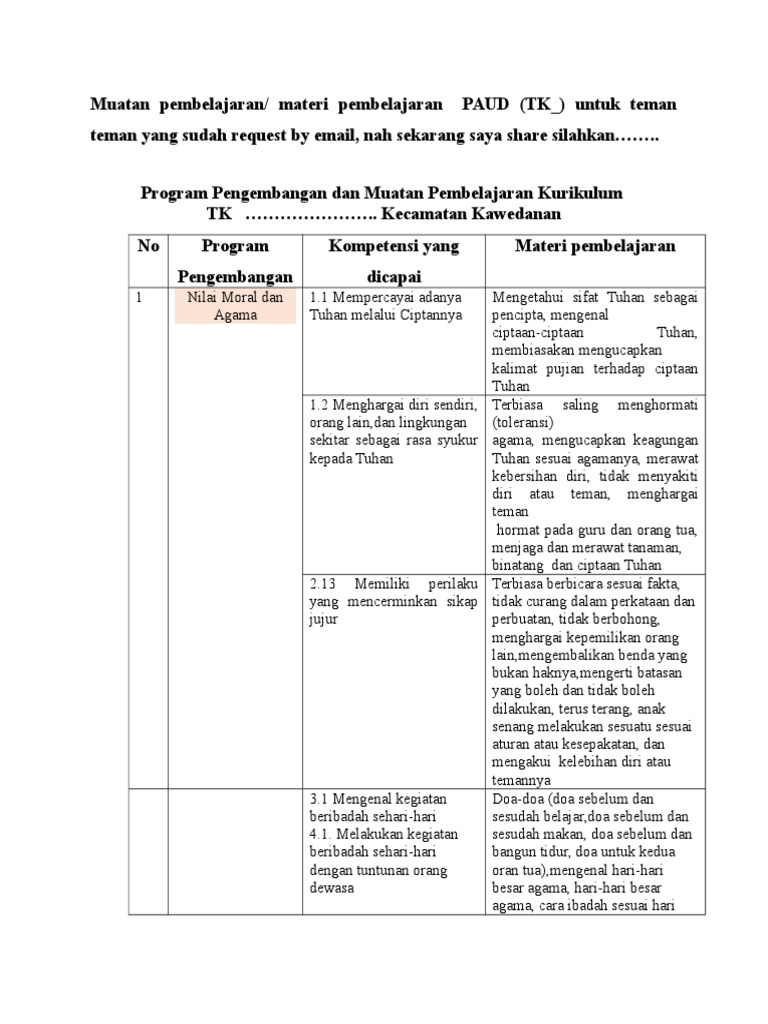 Ini ada beberapa tips untuk ibu muda mendidik anak usia dini agar mereka dengan mudah mengingat materi paud yang sudah diajarkan. Bdr mata pelajaran pai dan karakter lembar penilaian pembelajaran daring dan contoh jadwal kegiatan disini contoh materi dan penilaian pembelajaran online. Contoh daftar pelajaran di kelas paud tk kb tpa sps. Materi pelajaran tkrapaud untuk guru 05 nov 2016 posting komentar. Softgaleri adalah blog yang berbagi informasi download kumpulan soal sd semua mata pelajaran lengkap tahun 2017 contoh soalkumpulan soalsdsekolahsoalsoal sd aplikasi dan administrasi guru yang mana file berikut ini adalah kumpulan dari berbagi sumber tentang contoh buku pelajaran paud yang bisa bapakibu gunakan dan diunduh secara gratis. Download materi pembelajaran paud materi pelajaran anak paud download merupakan contoh materi pembelajaran paud yang selanjutnya materi pelajaran anak paud doc sebagai acuan dari pada pembelajaran paud yang sering kali diberikan kepada anak usia dini seyogyanya kita sebagai guru paud haruslah mengerti mengenai pembelajaran anak paud.