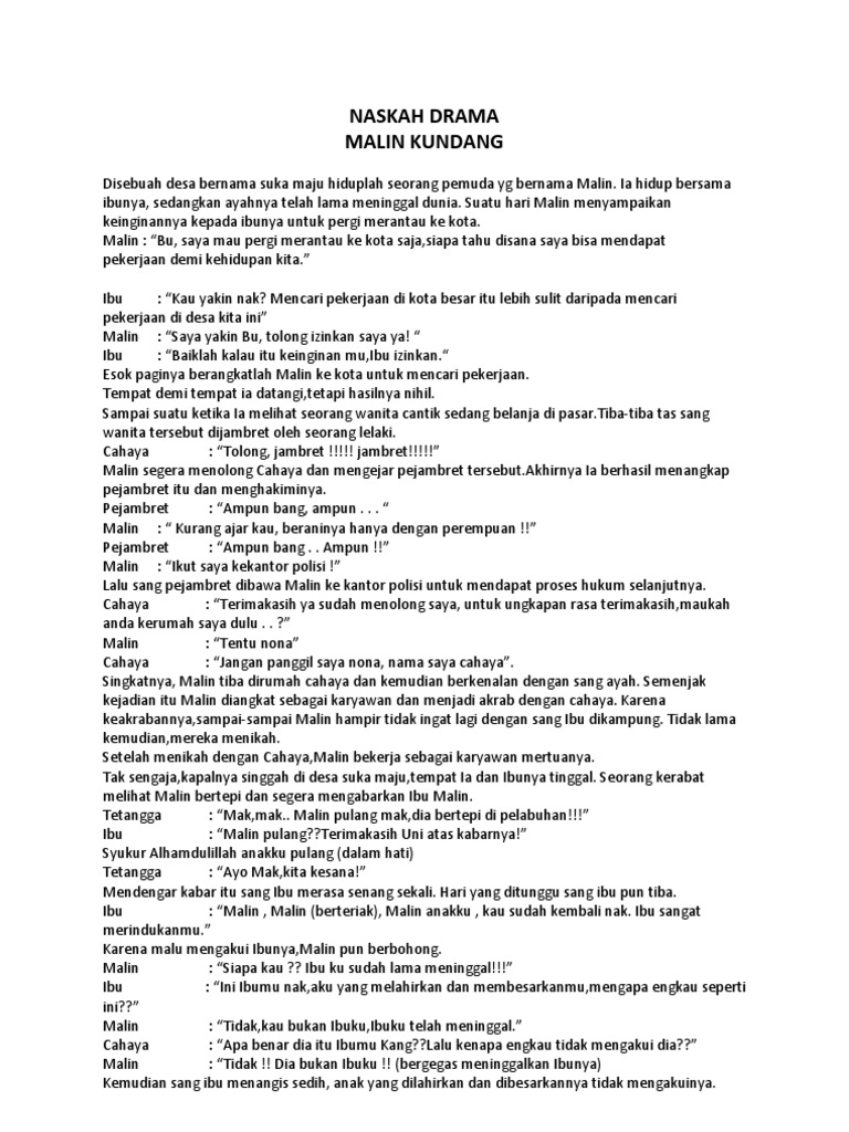 Contoh naskah drama cerita rakyat. Contoh naskah drama bahasa inggris tentang legenda jika kalian mendengar kata legenda pasti kalian langsung teringat dengan cerita malin kundang dari sumatera barat atau danau toba yang ada di sumatera utara. Saat mengetahui kata drama tentu membuat anda teringat akan suatu pertunjukan di atas panggung dengan para pemain yang berkostum unik serta dandanan yang nyentrik tergantung judul atau tema yang diambil pada naskahnya. Kedepan naskah drama cerita rakyat seperti ini akan terus ditambah agar lebih banyak lagi dan menjadi sebuah koleksi yang lengkap. Naskah drama 6 orang cerita rakyat. Contoh naskah drama teater 6 orang tentang persahabatan di sekolah karena sahabat dalam kehidupan remaja sering ada pertikaian. Cerita rakyat sering pula dipentaskan dalam bentuk drama yang mengandung nilai moral luar biasa.