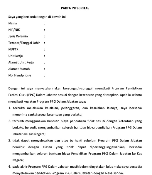Contoh fakta integritas guru pnsgbtkk. Contoh pakta integritas pns terbaru 192000 download info pakta integritas pns pakta integritas menyediakan saranamedia bagi pemerintah perusahaan swasta dan masyarakat untuk mencegah terjadinya korupsi kolusi dan nepotisme dalam sistem pemerintahan terutama dalam kontrak kontrak pemerintah public contracting. Tujuan surat pakta integritas adalah mendukung sektor publik agar dapat menghasilkan barang dan jasa dengan harga bersaing tanpa adanya penyimpangan. Demikian contoh pakta integritas yang dapat dijadikan sebagai acuan saat anda perlukan guna untuk melamar pekerjaan. Seperti pns partai politik dan tni adalah beberapa profesi yang diharuskan membuat surat pakta integritas. Inilah contoh fakta integritas untuk guru baik pns maupun non pns.