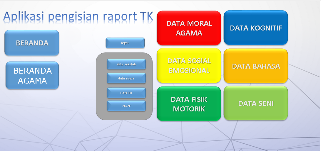 Download gratis contoh raport tk taman kanak kanak usia 4 5 6 contoh raport paud aka laporan semester pdf raport paud k13 kode rptpaud ifaketi kakzepe com. Download gratis contoh raport tk taman kanak kanak usia 4 5 tahun aplikasi excel otomatis dalam aplikasi raport taman kanak kanak ini ada 2 dua seet atau kolom yaitu yang pertama kolom data anak dan yang kedua kolom atau seet data usia anak 4 5 tahun. Jadi anda tidak perlu khawatir mendownload dan menggunakan file file ini di perangkat komputer anda. Aplikasi raport kurikulum 2013 kelas 4 sd revisi 2016. Pada tingkatan taman kanak kanak al quran dan taman pendidikan al quran secara isi bisa dikatakan adanya kembar isi dalam kolom penilaian raport pada tingkat ini. Di dalam penilaian harian anak di nilai menggunakan check list.