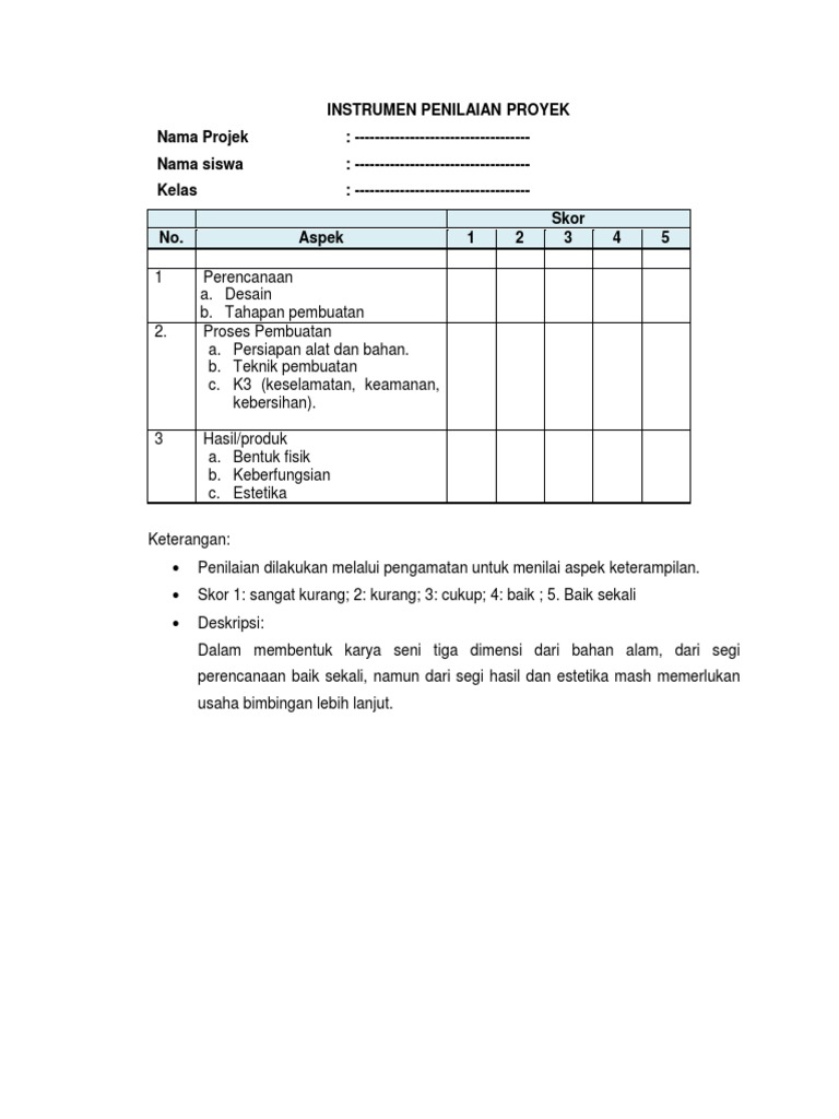 Contoh penilaian proyek sd. Penilaian keterampilan dapat dilakukan dengan berbagai teknik antara lain penilaian praktikkinerja proyek dan portofolio. Dengan demikian kd 44 dinilai 2 dua kali yaitu dengan produk dan proyek. Contoh format penilaian proyek siswa sd smp sma kurikulum 2013 ini akan menjadi bahasan saya pada postingan kali ini setelah sebelumnya saya posting tentang format penilaian portofolio yang anda bisa baca disinipenilaian proyek ini merupakan salah satu teknik yang digunakan pada penilaian keterampilan psikomotor selain portofolio produk unjuk kerja dll. Penilaian proyek dilakukan mulai dari perencanaan proses pengerjaan sampai hasil akhir proyek. Nilai yang diperoleh untuk kedua kd yang secara bersama sama dinilai dengan proyek tersebut adalah sama dalam contoh di atas 87. Contoh penilaian projek dan portofolio kurikulum 2013 kurikulum 2013 sudah mulai aktif dan anda sebgai pendidik atau guru juga harus mempersiapkan perangkat pembelajaran.