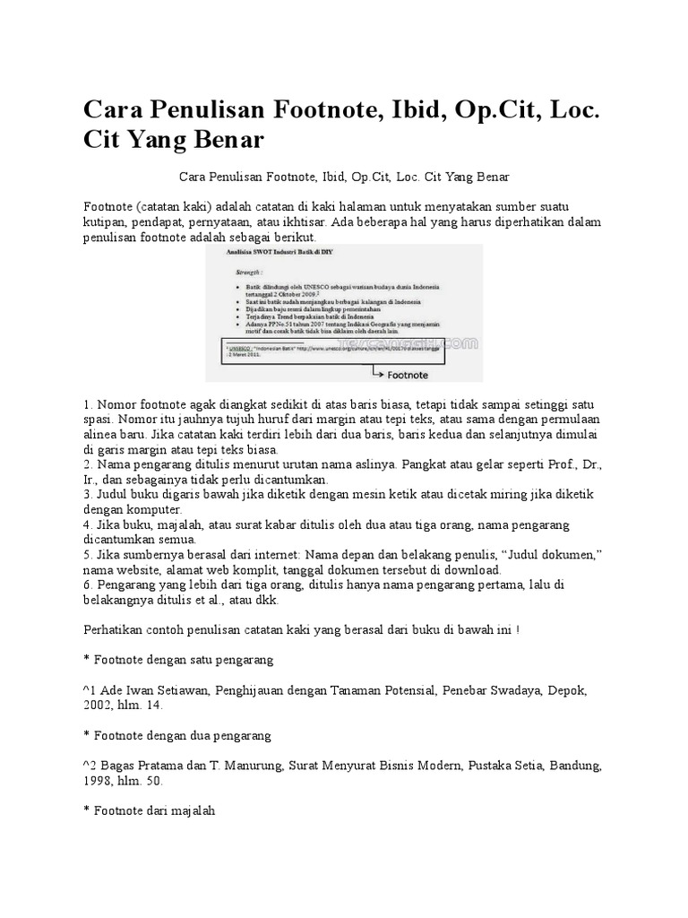 Nitibaskara pada catatan kaki 1. Contoh penulisan ibid opcit locit. Gorys keraf diksi dan gaya bahasa. Merupakan singkatan dari ibidem yang artinya dalam halaman yang sama. Cit footnote catatan kaki adalah catatan di kaki halaman untuk menyatakan sumber suatu kutipan pendapat pernyataan atau ikhtisar. Bila satu referensi dari sebuah buku tidak mengikuti secara langsung dan referensi dari sebuah buku yang lain oleh penulis yang sama yang tidak mendapat selahan intervensi dalam kasus ini tulislah nama penulis kemudian op cit pada karya yang dirujuk kemudian diikuti nomor halaman.