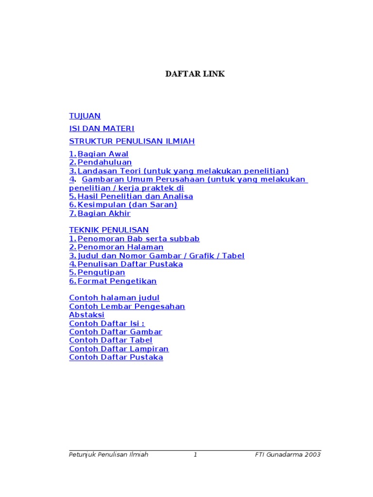 Contoh penulisan ilmiah tugas proposal penulisan ilmiah. Pi ini lengkap dan gratis. Fasilitas perpustakaan universitas gunadarma digunakan oleh mahasiswa dosen karyawan dan alumni universitas gunadarma. Pedoman penulisan ilmiah ini merupakan panduan berupa tata cara teknis penulisan rambu rambu dan batasan dalam penulisan ilmiah di lingkungan fakultas ilmu komputer dan teknologi informasi universitas gunadarma yang harus diikuti oleh. Perpustakaan universitas gunadarma dilengkapi dengan beragam bahan pustaka yang terdiri dari buku literatur baik dalam bahasa indonesia maupun. Perancangan perpustakaan berbasis web.