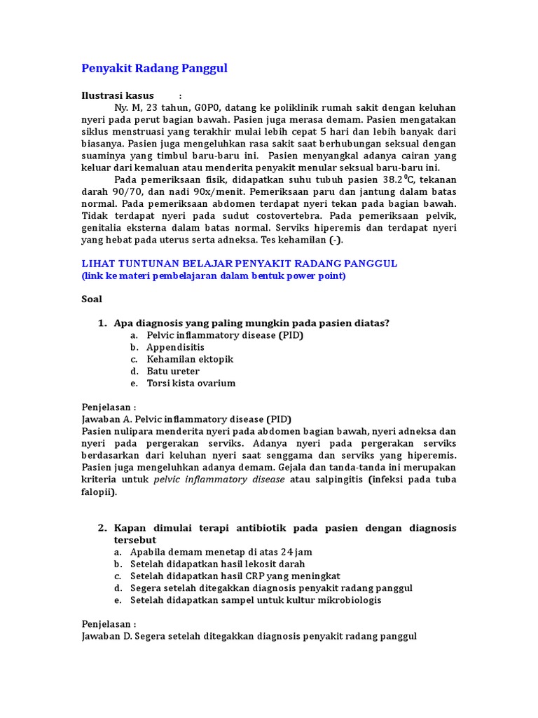 Penyakit radang panggul merupakan komplikasi umum dari penyakit menular seksual pms. Penyakit radang panggul pid. Wanita yang pingsan walau tak memiliki penyakit anemia atau darah rendah bisa juga dicurigai mengalami penyakit radang panggul. Pdf tentang penyakit radang panggul. Radang panggul atau pelvic inflammatory disease pid adalah infeksi pada organ reproduksi wanita seperti serviks rahim dan ovarium. Pid adalah infeksi yang paling peting dan merupakan komplikasi infeksi menular seksual yang paling biasa sarwono2011.