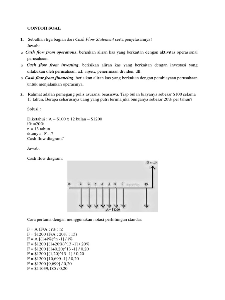 Contoh perhitungan cash flow. Di dalam metode tidak langsung dalam membuat laporan cash flow disusun menjadi tiga leemen pada elemen kas dari suatu kegiatan usaha diletakan di paling atas kemudian diikuti oleh dua elemen berikutnya yaitu arus kas yang berasal dari kegiatan investasi dan arus kas. Sleekr menghadirkan contoh cash flow sederhana kepada anda dalam artikel kali ini. Kas masuk bersih eait penyusutan bunga 1 tax jika proyekusaha tersebut dibiayai dengan modal pinjaman. Contoh cash flow from operating activities antara lain. Kas masuk bersih eat penyusutan. Contoh laporan arus kas konsolidasian asgr tahun 2011 sudah ada anotasi untuk pembahas free cash flow di bawah ini.