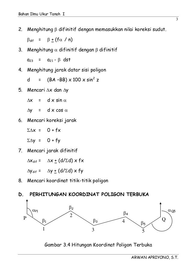 Poligon terbuka terikat sempurna 13. β 4 86 o 5910 dan d 1 2 52 meter d 2 3 50 meter d 3 4 58 meter d 4 1 50 meter. β 2 89 o 2010. β 1 92 o 3020. Pengisian formulir penghitungan poligon 10. Poligon terbuka tidak terikat sempurna 14.