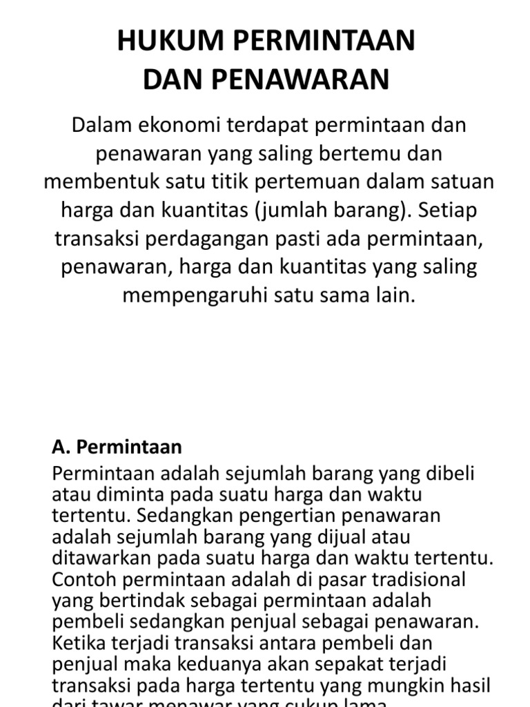 Akan dibahas secara rinci mulai dari pengertian jenis jenis macam macamnya konsep rumus elastisitas permintaan dan penawaran dan contoh soalnya. Singkatnya permintaan adalah banyaknya jumlah barang yang diminta pada suatu pasar tertentu. Setiap transaksi perdagangan pasti ada permintaan penawaran harga dan kuantitas yang saling mempengaruhi satu sama lain. Contoh surat penawaran menjadi seorang pengusaha atau bisnisman pasti akan mengenal salah satu jenis surat resmi ini. Permintaan dan penawaran adalah dua kekuatan yang secara bersamaan menggerakkan perekonomianberikut pembahasan lengkapnya. Disamping memiliki pengaruh yang baik untuk membuat jenis usaha kita dapat laris dan laku dipasaran.