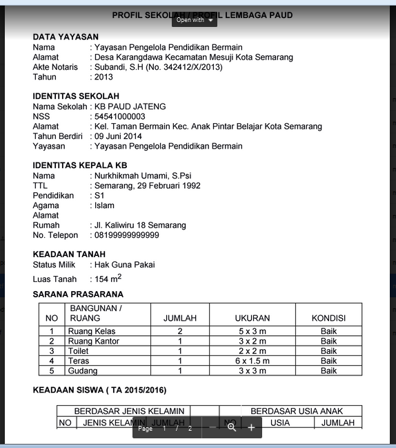 Download contoh profil lembaga sekolah paud baik untuk tk kb tpa maupun sps. Profil lembaga paud atau profil sekolah paud adalah informasi yang menampilkan data identitas tentang sekolah paud ayah bunda. Profil sekolah atau profil lembaga paud biasanya sangat diperlukan ketika lembaga paud menyusun proposal dana bantuan maupun untuk keperluan lainnya. Anda dapat mengetahui lokasi sekolah melalui menu peta sekolah anda dapat mencari informasi sekolah melalui menu pencarian sekolah anda dapat mengetahui grafik jumlah. Jadi anda tidak perlu khawatir mendownload dan menggunakan file file ini di perangkat komputer anda. Format profil format profil sekolah paud anda mencerminkan apa bagaimana dan di mana anda ingin kakteristik kunci anda.